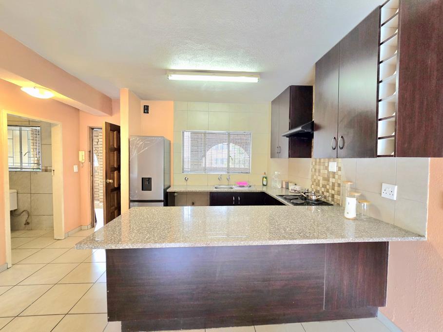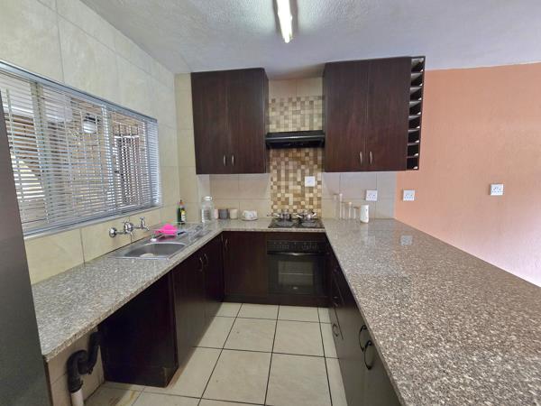 Discover this lovely 1-bedroom apartment featuring built-in cupboards and situated in a safe and tranquil complex. The open-plan kitchen boasts a modern design with ample cupboards and drawers for all your storage needs. High-quality tiles and finishes beautify the entire home, adding a touch of elegance.