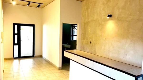 The open-plan kitchen is thoughtfully designed with premium finishes, featuring a high-quality kitchen unit, a built-in oven, and a gas stove. The layout includes a welcoming living area, a delightful bedroom complete with an ensuite bathroom and a large geyser. The residence is entirely tiled and boasts spacious, state-of-the-art built-in wardrobes, complemented by a balcony that provides stunning views. Additionally, the property is equipped with a lift for added convenience and grants access to a communal swimming pool.