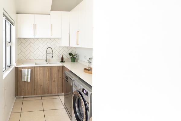 Modern open-plan kitchen with a separate laundry and scullery