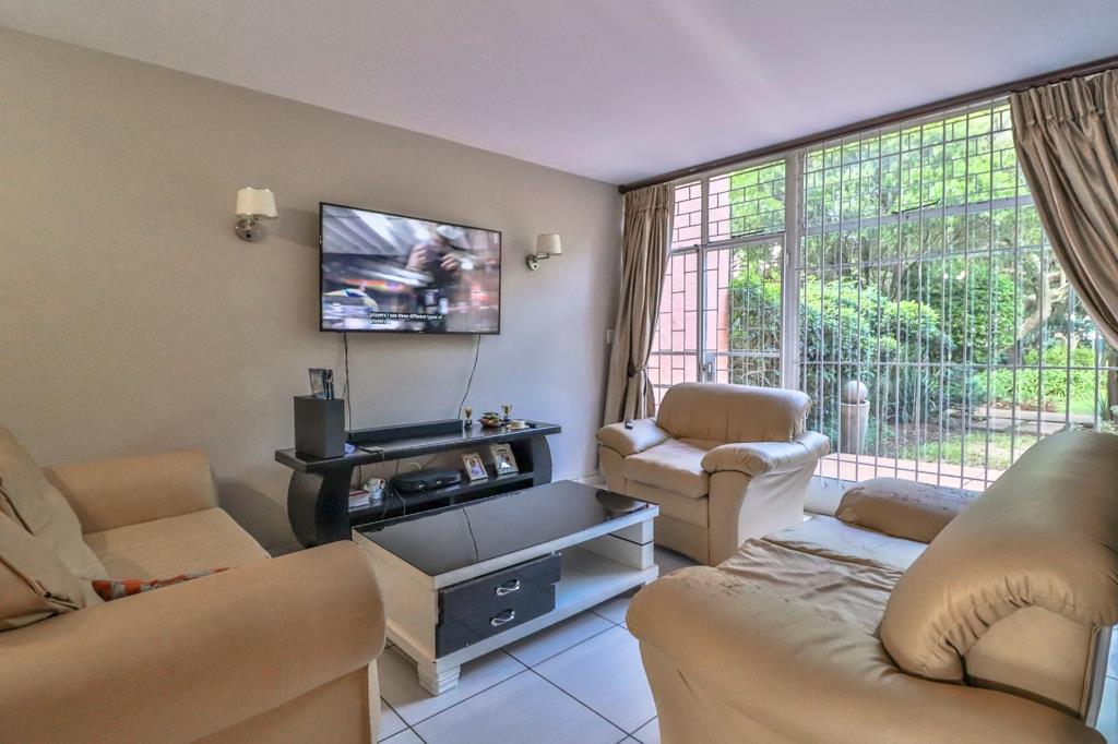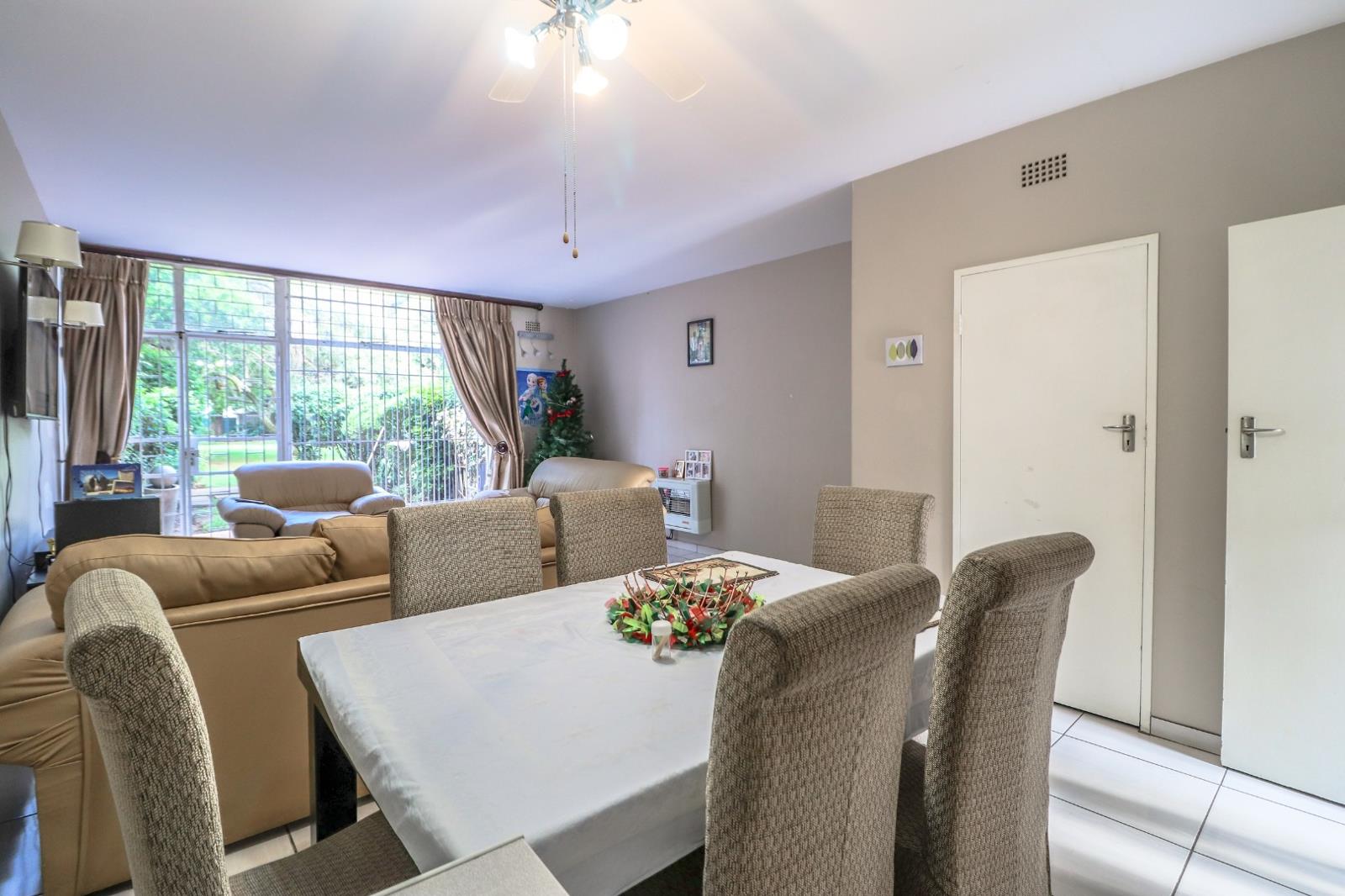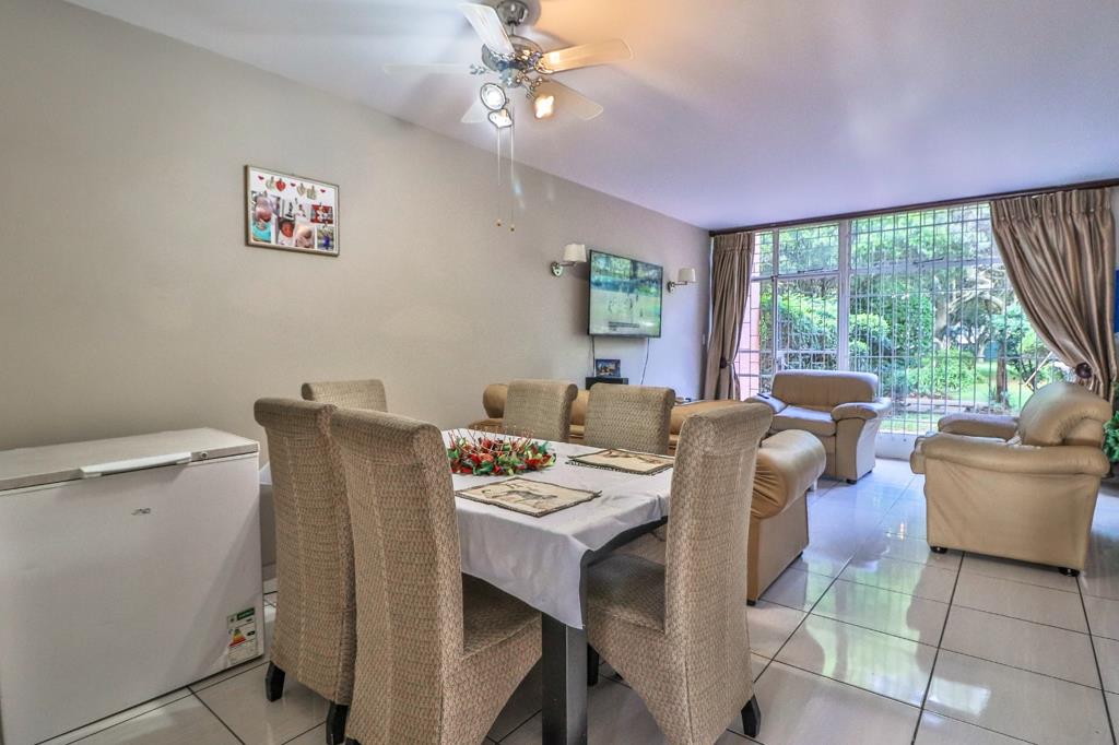Main bedroom and lounge/dining overlooking lush treed communal garden. Garden is park like garden.