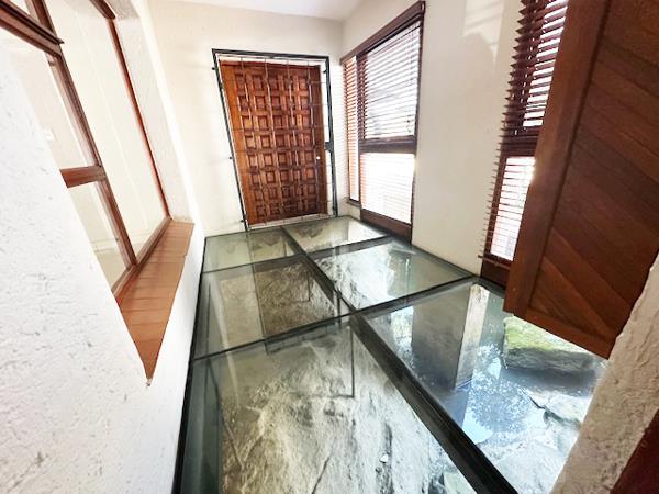 From the moment you enter, you''re greeted by a striking entrance walkway set over glass panels showcasing the natural rock face below a stunning first impression of the home''s unique design. The expansive open-plan layout features a stylish indoor braai area and a sun-drenched pool deck, ideal for entertaining or unwinding in peaceful surroundings.