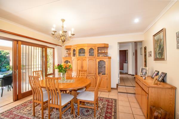 Indoor and outdoor living blend harmoniously as glass doors open onto a sun-drenched covered patio complete with a built-in braai, the perfect vantage point to enjoy the beauty of the established, bird-friendly garden that offers both privacy and a sense of natural sanctuary.