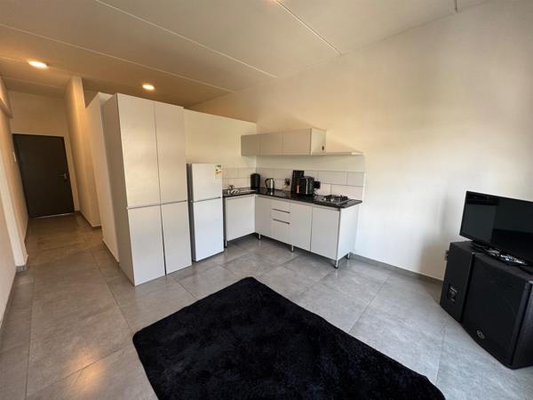 This charming 1-bedroom apartment in Ferndale, Randburg, offers a comfortable and modern living space. The open-plan layout seamlessly connects the living area and kitchen, creating an inviting atmosphere for relaxation and entertaining. The kitchen is well-equipped with contemporary appliances and ample storage, perfect for culinary enthusiasts.