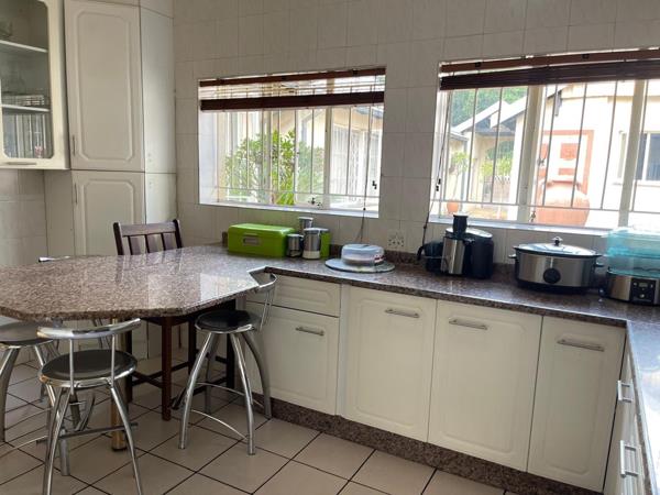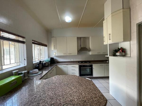 complete with an island, pantry, and generous cupboard space. The kitchen