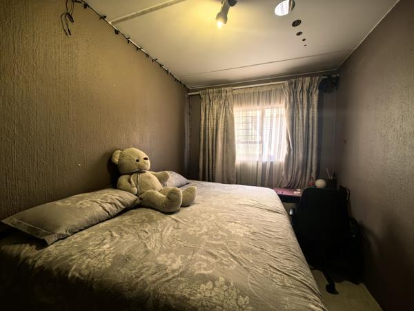 Spacious living area with built in wall unit / display cabinet, mounted mirrors that add to the aesthetics of this unit. The passage separates the living area from the private living with 2xKing size bedrooms. Adding to the uniqueness of the property, you can access the double garage from the 2nd bedroom.