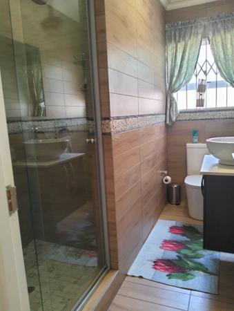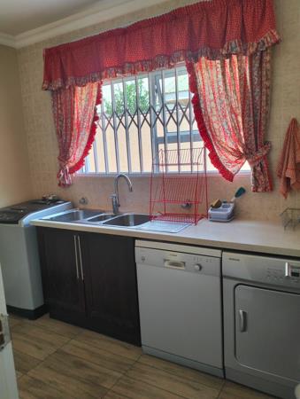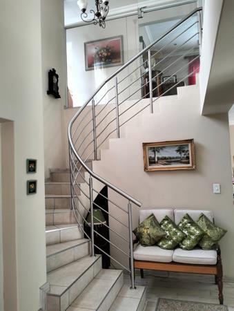 Upon entering, you''re greeted by a beautiful entrance hall leading to a spacious lounge with a cozy fireplace and a dining room that seamlessly flows into a covered outdoor entertainment areacomplete with a built-in braai and a refreshing splash pool. The gourmet kitchen is a chefs dream, featuring a gas stove, solid wood cabinetry, and elegant Caesarstone countertops, along with a separate scullery that accommodates a top-loader washing machine, dishwasher, and tumble dryer. A guest bedroom and bathroom (with shower) are conveniently located downstairs, along with a walk-in linen cupboard beneath the staircase.