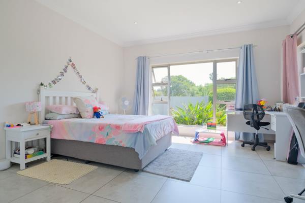 From the moment you step inside, the expansive open-plan living and dining spaces make an immediate statement. Striking tiled flooring flows effortlessly through the home, leading out to the entertainment area with a well-established large garden the perfect setting for hosting gatherings or unwinding while taking a sundowner.