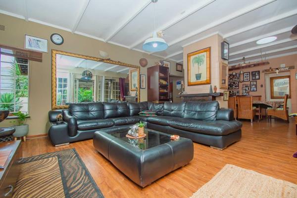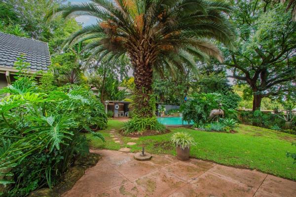 Entertain effortlessly throughout the year with a large thatch lapa and an extended covered patio. These spaces connect the main house to the lush garden areas, perfect for morning coffees or festive holiday gatherings. A large, sparkling pool is nestled in the garden, surrounded by feature patio areas ideal for relaxation and sunbathing. Garden enthusiasts and pets alike will appreciate the variety of large trees and meticulously landscaped gardens.