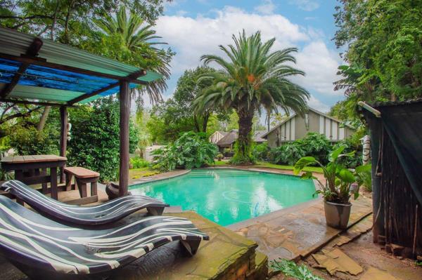 Ideal for entertaining, the property includes a large thatch lapa and a covered patio that seamlessly connects the main house to the garden. Whether enjoying morning coffee or hosting festive gatherings, you''ll appreciate the layout. A sparkling pool, set privately in the garden, is complemented by patio areas perfect for relaxation and sunbathing and boasts solar pipes for additional heating. The lush landscape is a haven for garden enthusiasts and provides ample space for pets.