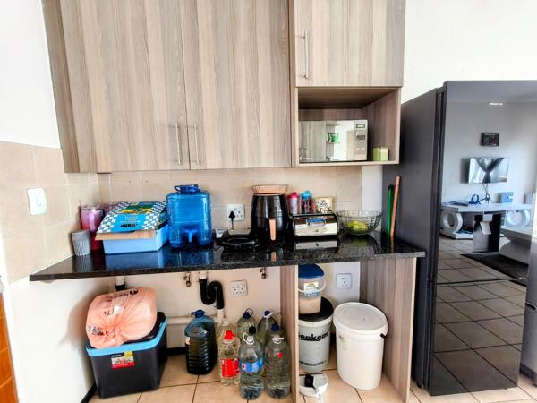 This well-kept third-floor unit is ideal for first-time buyers or investors looking for a secure, low-maintenance property in a prime location. Conveniently situated close to shops, schools, and major routes, it offers both comfort and convenience. Inside youll find two spacious bedrooms with built-in cupboards and two bathrooms, including a main en suite. The modern kitchen features granite countertops and space for three appliances, making everyday living simple and practical.