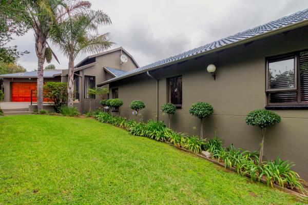 Exterior: The property is set within an extensive, manicured garden and secured with comprehensive security features and automated gates.