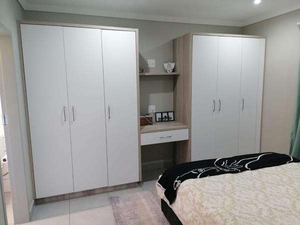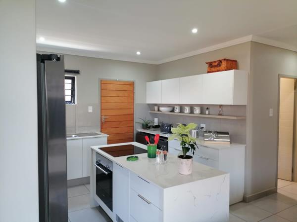 Spacious 3 bedroom 2.5 bathroom for sale. in a secure estate offering a beautiful garden, open plan kitchen with space for three wet appliances, electric stove, space for a double door fridge, main Bathrooms with full bathroom, Guest Bathroom, guest bathroom with tub only, spacious master room with en-suite and its suitable for queen bed, Parking for 2 covered parking, prepaid water and electricity, fiber ready, affluent, Complex offers, Kids play area, Communal entertainment area, Biometric access control, 24hr security, Electric fencing, Security gates, Perimeter wall