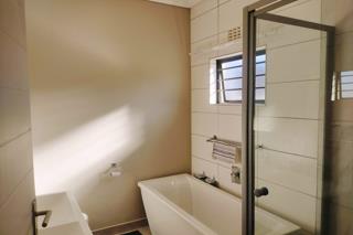 The family bathroom is sleek and stylish, equipped with a bath, separate shower, and ample storage space.