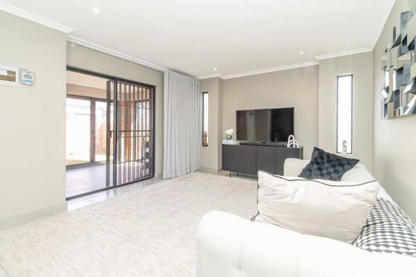 The home features three beautifully appointed bedrooms. The main bedroom boasts an ensuite bathroom, providing added privacy and comfort. The other two bedrooms share a sleek, modern bathroom equipped with a toilet and tub, offering convenience for family members or guests. Additionally, the house is fitted with a solar geyser, promoting energy efficiency and cost savings.