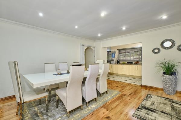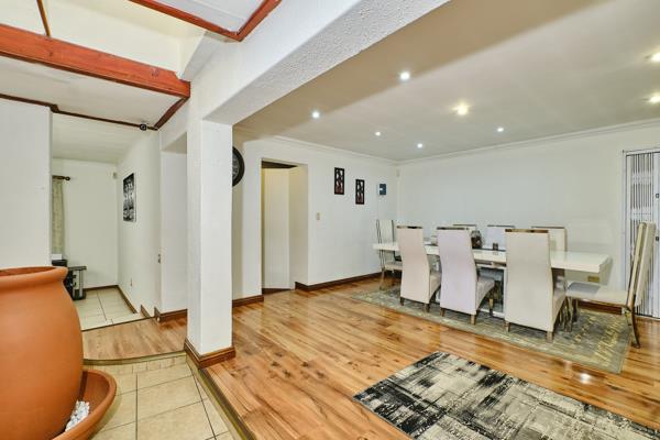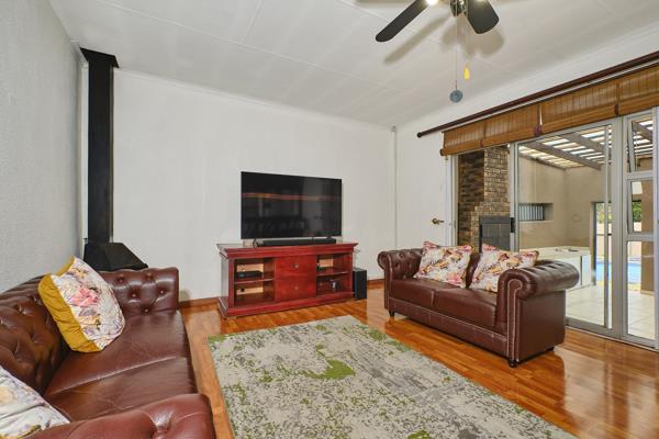 The formal lounge, complete with a cosy bar and feature fireplace, invites relaxed gatherings. This space opens onto a covered entertainment patio with a built-in braai and sink perfect for effortless entertaining. From here, the home flows into a wrap-around garden with a sparkling pool new pump recently fitted. The generous garden offers exciting potential: create a private retreat, a pet-friendly space, or even build a cottage or flatlet for extended family.
