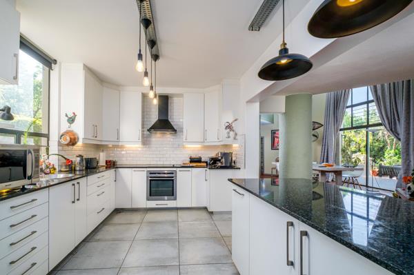 Open plan living with soaring double volume windows and feature pillars all opening onto the terrace and garden. Chef inspired kitchen with granite tops and a dedicated scullery/laundry flows to the living and dining areas - all opening on to the terrace.