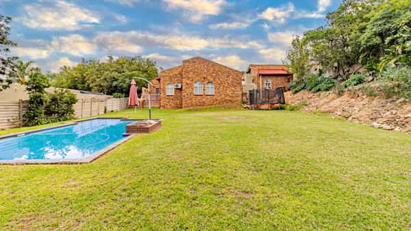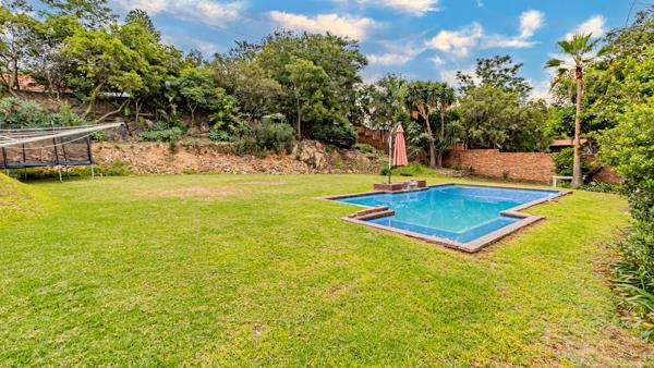 A beautifully landscaped backyard with a pool, perfect for summer barbecues, kids playtime, or simply enjoying a tranquil evening.