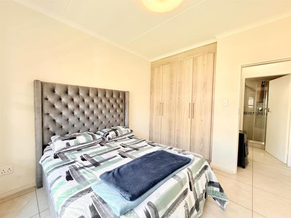 This lovely unit features an open-plan kitchen and living area that flows effortlessly onto a private patio, ideal for relaxing or entertaining guests. The bedroom is bright and airy with built-in cupboards, while the full bathroom offers both a bath and shower with sleek, contemporary finishes.