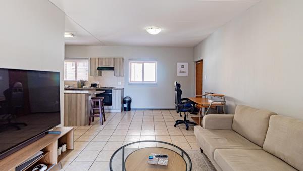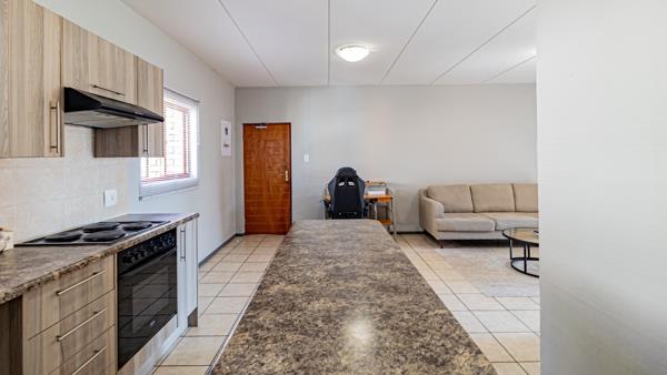 The open-plan living space that creates a modern and spacious feel. The kitchen is equipped with plenty of counter top space, adding a sleek and stylish touch to the space, and the center island making it a culinary delight. There is also space for two appliances, making it easy to keep the kitchen tidy and functional. The complex offers a secure living environment, ensuring that residents feel safe and protected at all times. With its convenient location and attractive features, this apartment is an excellent choice for comfortable and modern living.