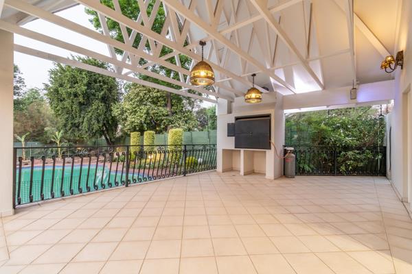 Step into a home designed for both family living and effortless entertaining. The spacious kitchen is a chefs delight, boasting a gas stove, double ovens, granite countertops, ample cupboard space, and a cozy breakfast nook. The large dining room flows seamlessly into the bright lounge, while a dedicated entertainment room with built-in bar opens onto a covered patio with built-in braaithe perfect spot to enjoy the sparkling pool and lush garden.