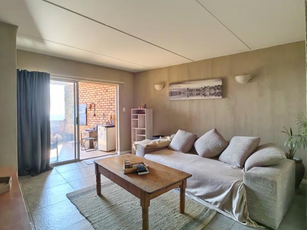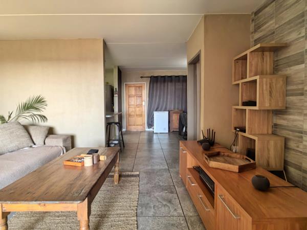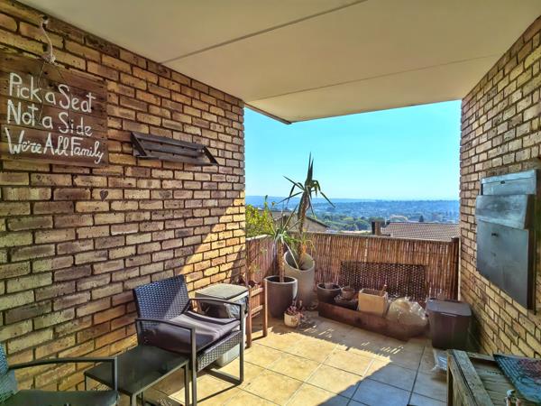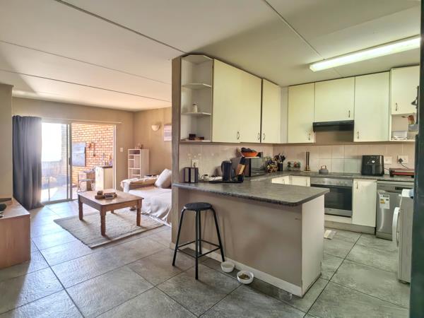 The open-plan kitchen and living area creates a welcoming, spacious environment ideal for modern living. The kitchen features ample cupboard and counter space, plumbing for two undercounter appliances, and room for a single-door fridge. The lounge and dining area are tiled and lead out to a private balcony complete with a built-in braai and stunning views the perfect place to unwind or entertain. All three bedrooms are fitted with built-in cupboards and attractive tile laminate flooring. The main bedroom includes a full en-suite with both a bath and separate shower and the second bathroom features a bath and serves the remaining bedrooms comfortably.