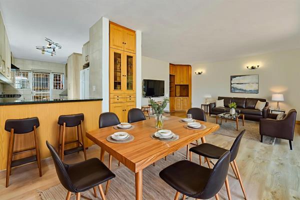Downstairs, youll find a light-filled, open-plan lounge and dining area that opens effortlessly to an open patio an inviting space for entertaining or enjoying quiet afternoons outdoors. The sliding door is secured excellently with a Trellidor. The kitchen is both stylish and functional, featuring granite countertops, ample cupboard space, and room for a double-door fridge and a dishwasher. A separate laundry room adds to the convenience, keeping household tasks neatly tucked away.