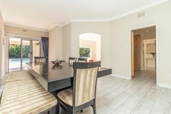 2 lovely living rooms the first lounge has high-volume ceilings and stacking doors leading out onto a picturesque garden with sparkling blue swimming pool. The second lounge/TV room has sliding doors leading out onto the patio.