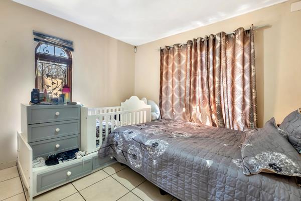 The bedroom is large, with ample cupboard space, and accommodates a king size bed with ease.