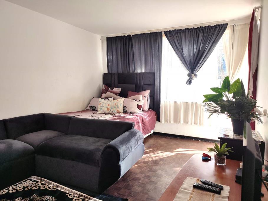 The large bedroom features a fitted wardrobe, ensuring ample storage space for your belongings. The bathroom includes a toilet and a bathtub, offering a perfect place to unwind after a long day.