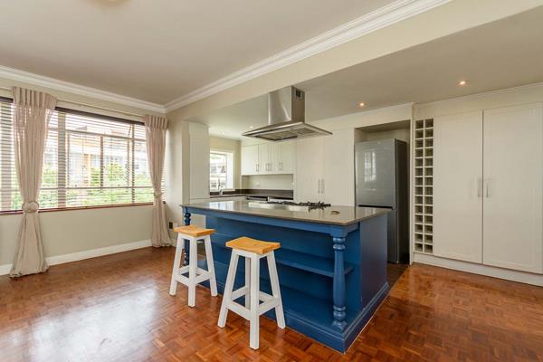 The gas stove built into the island provides ample space for cooking, while the concealed cabinetry keeps the area neat and tidy. You can easily enjoy your meals at the dining room table whilst conversing with your guests.