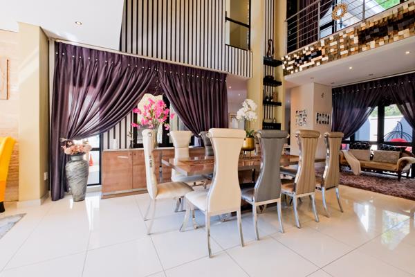 Welcome to a stunning and spacious home designed for comfort and elegance. This property features a grand, double-volume entrance with large white tiles that lead to a seamless, open-plan living area. The integrated lounge and dining room flow into a modern kitchen, which boasts soft-closing cupboards, a five-plate gas stove, two wine bays, and a separate scullery and laundry room that accommodates two appliances. A convenient pantry cupboard provides extra storage.