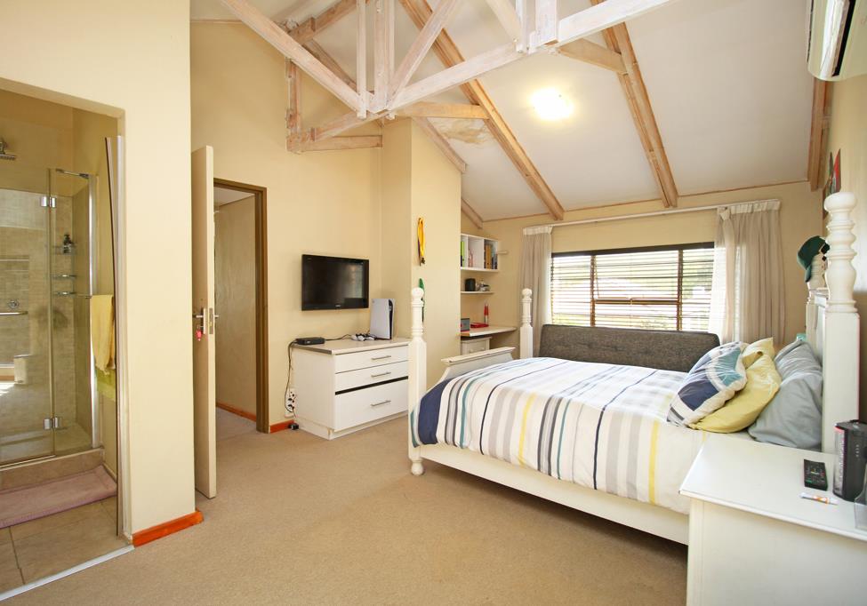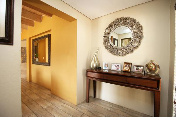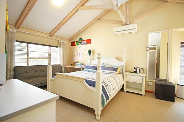The garden is perfect for entertaining friends and family, with a built-in seating and braai and plenty of space for gatherings. Two double garages plus parking for additional cars adds to the convenience.