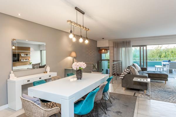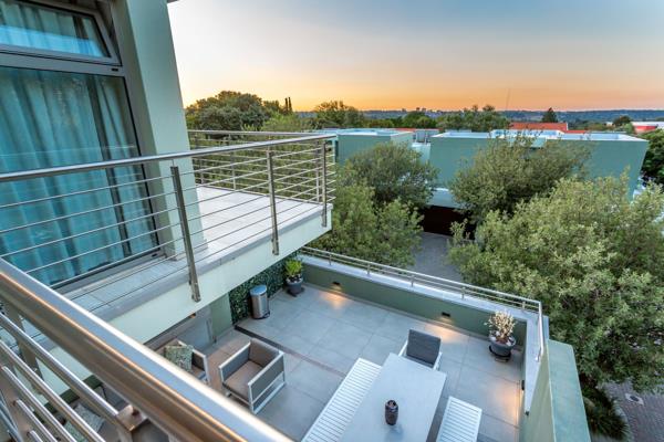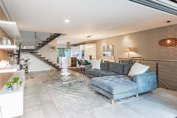 Ideal for professional couples, a perfect lock-and-go. 301m. . Seller asking R5 900 000. A striking structure in concrete and steel, this secure cluster home is situated in a quiet, select complex of 7 upmarket units. This triple-storey dwelling is a secure, private retreat, yet ideal for grand entertaining. Spacious reception areas flow to a large terrace with gas braai, tailor made for sundowners, Sunday lunches and sophisticated entertaining. The modern, open-plan kitchen with integrated fridge/freezer and dishwasher, double Smeg ovens, ceramic hob, wine fridges, large Caesarstone island creates a sleek, streamlined finish. The kitchen flows through receding doors to garden and breakfast area. Private, accessible study. The floating staircase provides access to the 3rd level with 3 en-suite bedrooms, balconies and main suite with large, walk-in dressing area. Double garaging with basement utility and storage. Large laundry, solar geyser with full solar installation, and complex borehole. Excellent security, CCTV, all the windows have double glazing, front roller shutter and complex security.