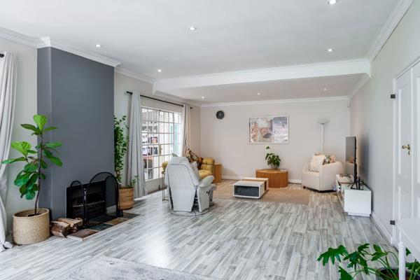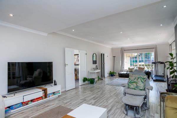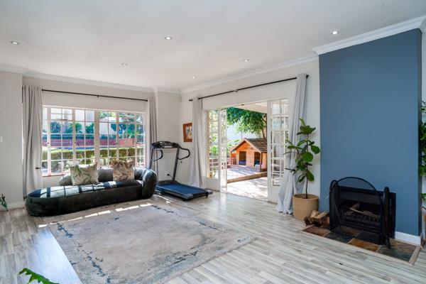 North facing with large, covered, live-in patio with built-in braai, lawned gardens, perimeter trees and sparkling pool. Open-plan lounge/dining areas with wood-burning fireplace and flow to patio. Well-fitted kitchen with centre island and adjoining scullery/utility room. Family/TV room with French doors to garden. 3 Spacious bedrooms, main en suite with French-style bathroom, double shower and walk-in dressing room. Separate study, family bathroom and guest cloakroom.