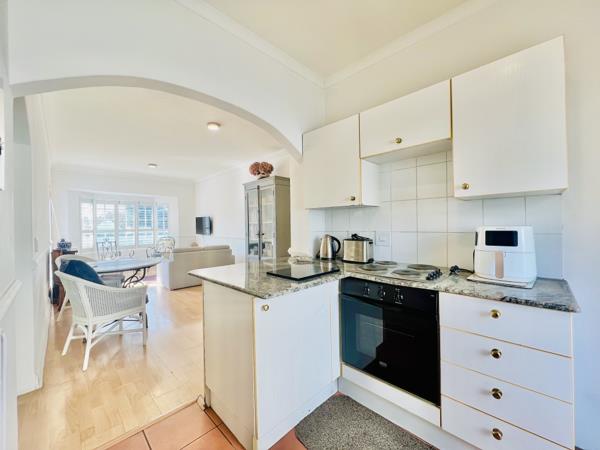 A stylish, open-plan kitchen and living area. The kitchen with a breakfast nook, granite tops, under counter oven and hob, space for 2 appliances and access to the exclusive use courtyard.