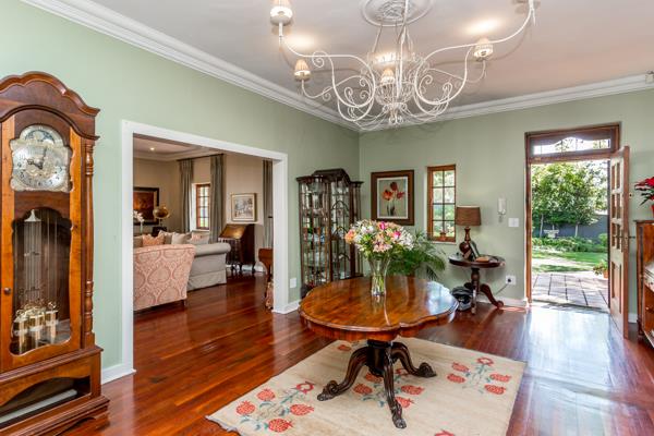 Seller asking R6.350m. Welcome to this magnificent Cape Dutch-style residence in the heart of Craighall, a masterpiece of timeless elegance. This exquisite home boasts four spacious bedrooms and four bathrooms, each thoughtfully designed. The three grand reception rooms, with their soaring ceilings and classic detailing, provide an impressive setting for both formal and relaxed gatherings. A cozy pyjama lounge offers a perfect family retreat.