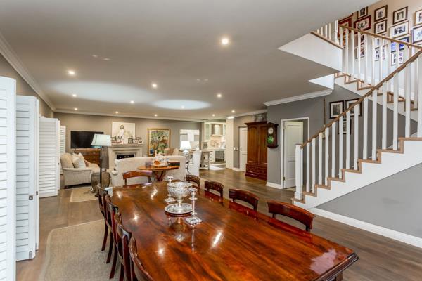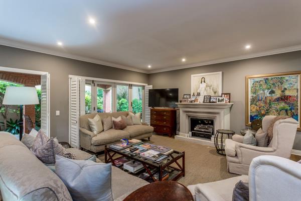 Open-plan living receptions flow onto entertainers'' live-in covered private patio with manicured garden with high walls, shrubbery and braai area. Chefs kitchen with Caesarstone tops and separate scullery with walk-in pantry and plumbed for dishwasher and washing machine. Downstairs guest cloakroom and built-in wine cellar under the stairs. Upstairs study area/pyjama lounge, 3 bedrooms, main bedroom with dressing area and full bathroom en suite, 2nd full bathroom.