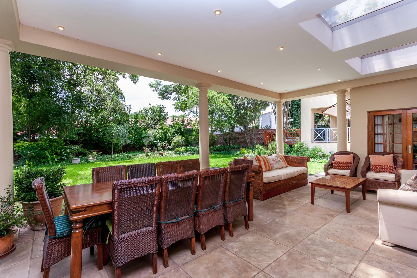 Tucked away in the sought-after, secure boomed area of Craighall, this spacious family home is an entertainer''s dream. With five bedrooms and three bathrooms (main en-suite), as well as a convenient guest loo. Well-equipped kitchen and laundry featuring plenty of storage and workspace, flowing seamlessly into the open-plan lounge and dining room. A dedicated study, an expansive covered patio overlooking a sparkling pool and an established garden.