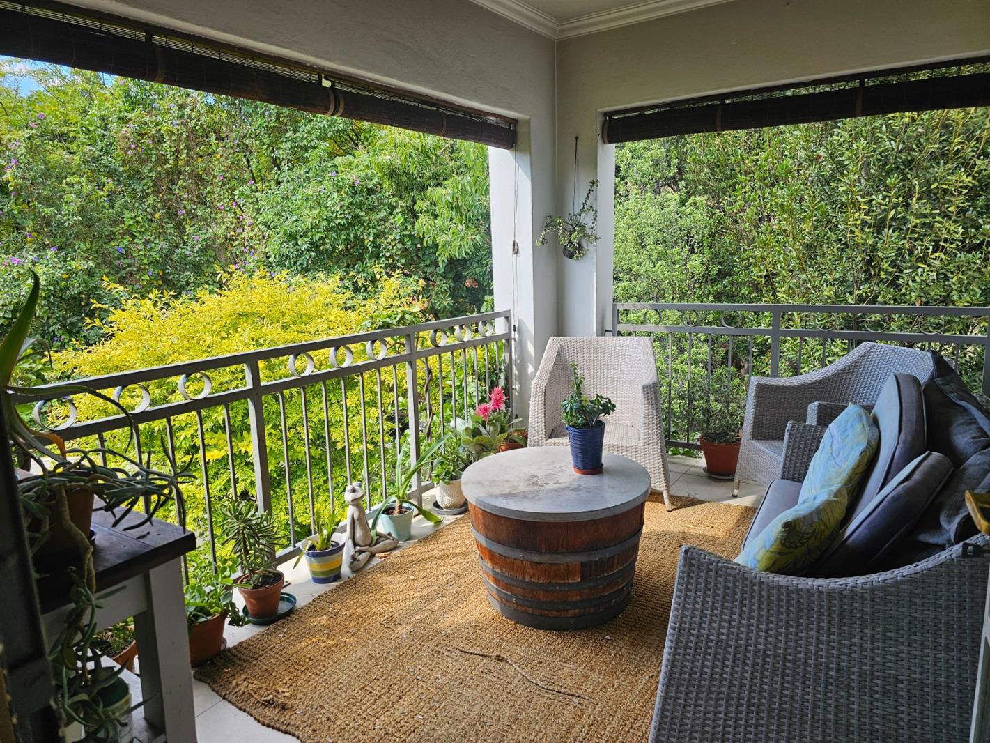 North-facing, stunning 120m 3 bedroom top-floor apartment with tree-top country views in sought-after Craighall Estate with 24hr guards. Large, open-plan receptions with wood-look floors opening onto large balcony. 3 Good-sized bedrooms, some with bay windows. Main bedroom with built-in dressing area and air conditioner. 2 Bathrooms, main en suite and 2nd bathroom with shower. Well-fitted kitchen with Caesarstone tops, Smeg gas range cooker, kitchen opens to private enclosed drying yard/utility area.