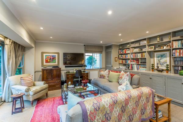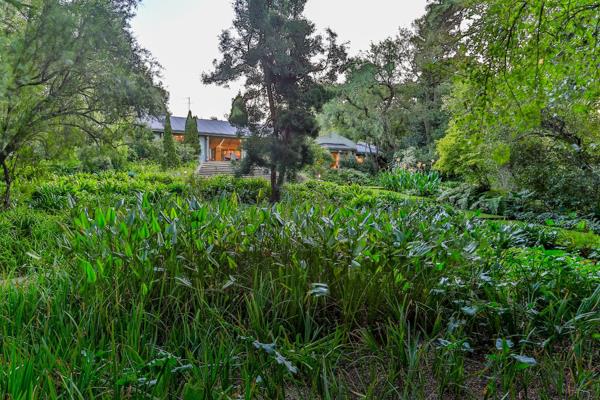 A spacious, elegant home decorated with quiet, good taste. The home is designed for grand-scale entertaining and happy family living. This south-entry, north-east facing home overlooks 3 700m of exceptional, landscaped gardens created by the renowned designer, Patrick Watson, of Sun City fame. His talents have transformed a riverside stand into a verdant parkland. A venue for celebrations, weddings, milestone birthdays, soirees, orchestral evenings and charity markets, well known to many Johannesburgers who have enjoyed champagne and good food in these beautiful surroundings. Pam Golding Properties are delighted to have the opportunity to market this select property. The 100m+ patio, with generous proportions, high ceiling, huge fireplace and grill area, overlooks the spectacular, terraced gardens and plunge pool. Borehole, full solar system and generator ensure ample water supply and uninterrupted power together with a full sprinkler system for the garden.