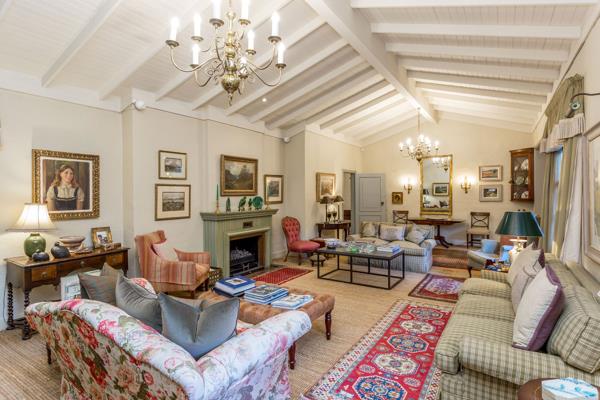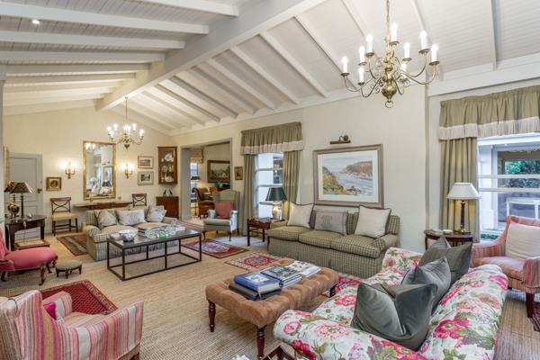 The house comprises a spacious entrance accessed through a paved courtyard, formal lounge, atmospheric dining room, cosy TV room, Slavin live-in kitchen. It has 4 bedrooms with en-suite bathrooms, the main suite with his-and-hers dressing room and classic, ageless, full bathroom. There are 2 further en-suite bedrooms. Situated in the west wing is a private sitting room, small kitchenette and en-suite bedroom with garden access. Large windowscapes ensure streaming sunlight and incredible garden views. Double garage and ample off-street parking. 2 Staff cottages. Well secured, exterior beams, full alarm system.