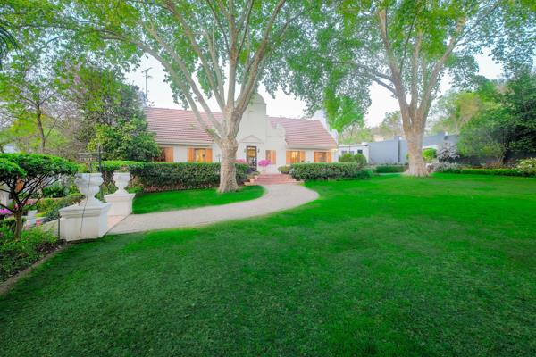 An iconic homestead steeped in heritage and elegance. Asking R6.3 million. Standing tall and proud overlooking a parklike garden with traditional London plane trees, rolling lawns, perimeter shrubbery and high protective walls. This landmark in Craighall, admired by many, tells a story of days gone by. Solid teak wood floors, engineered wood, solid wooden doors, feature wine cellar, protected courtyard pool and patio. Self-contained separate cottage. Quality solar system with 16KVA inverter, 4 lithium batteries and 16 solar panels.