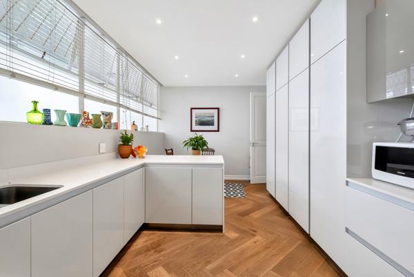 Light & airy with high ceilings, engineered wood flooring, white aluminium windows and doors. A baronial sized open plan reception room leads to the large open balcony with views to the northern skyline. Exquisite well-designed Blue Line kitchen with Miele stove, hob, integrated fridge & freezer, dishwasher plus combination washing machine tumble dryer. Caesar-stone tops, soft close cabinetry, all the bells and whistles. Enormous, north facing luxurious master bedroom, bathroom ensuite, walk through wardrobe, & additional cupboard space installed. 2 additional north facing bedrooms - all 3 bedrooms lead out to the open balcony. 2nd beautiful bathroom with double showers - Duravit, Victoria & Alfred sanitary ware, & Hans Grohe.