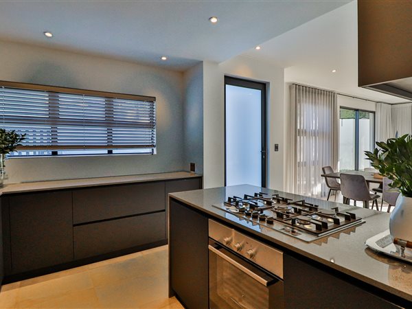 - Modern open-plan kitchen with exquisite finishes, gas stove, and scullery with space for three appliances