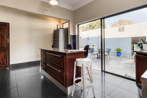 The three expansive reception rooms, all opening to a tranquil, central courtyard with a water feature and lush surrounds. A separate pub room complete with bar and double sliding doors connects the courtyard to the kitchen and dining area, creating a seamless indoor-outdoor flow perfect for hosting on any scale.