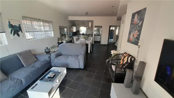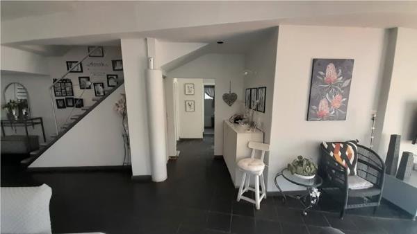 Boasting three well-sized bedrooms downstairs and an additional en-suite bedroom upstairs, the home provides ample space for family living. The upstairs suite opens onto a lovely veranda, perfect for enjoying peaceful mornings or sunset relaxation. All bedrooms are fitted with built-in cupboards and stylish laminated flooring, combining functionality with a contemporary look.