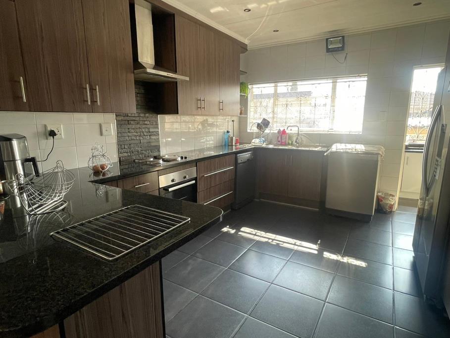 The main house features three sunny bedrooms with built-in cupboards, a study or home office, a neat bathroom with shower, and a guest toilet. The open-plan lounge, dining area, reception room, and renovated kitchen create a welcoming heart of the home, with granite countertops, plenty of cupboard space, a breakfast nook, and a separate scullery. A solar geyser adds to the homes practicality.