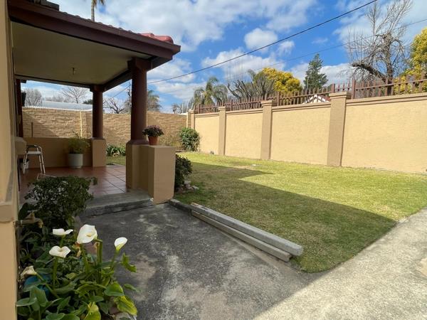 The property also includes a double tandem carport, additional open parking, low-maintenance front and back gardens, a charming covered front porch, and two outdoor basins, and store room. Security features include an alarm, burglar bars, security gates, and an automated perimeter gate. Prepaid electricity is installed for convenience.