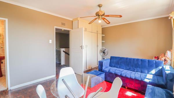 The kitchen is a good size with built-in cabinetry and flows into the open-plan dining and lounge area, which leads out to a private garden perfect for relaxing or entertaining. The complex offers a communal swimming pool and is ideally located close to Balfour Virgin Active, with easy access to Rosebank, Sandton, and a selection of top schools in the area.
