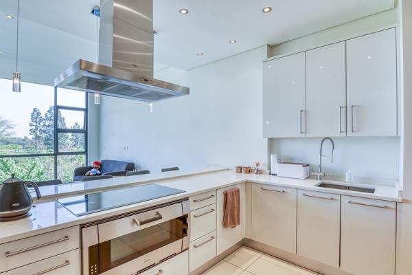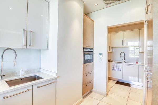 As you step into this incredible space via elevator, youll be greeted by soaring high ceilings and exquisite finishes that truly set this apartment apart. To the left of the entrance, a spacious open-plan layout invites you to enjoy a generous dining area that seamlessly flows into a formal lounge, where expansive glass panels lead out to a spacious balcony, offering refreshing vistas of lush greenery. Just off the balcony, a cozy second living area complements the dining and lounge spaces, all surrounding a beautifully modern kitchen that includes a scullery and high-end appliances, including a double fridge/freezer.